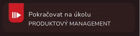 Pokračovat v práci či ji ukončit lze v moment, kdy uživatel má již zvolený projekt a náplň práce. Slouží k tomu třetí červené tlačítko s ikonou šipek nebo vlajky.
