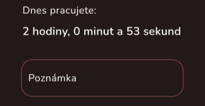 Název tlačítka se mění v návaznosti na akci, kterou provede po stisknutí. To, že práce na daném projektu je zaznamenávána, uživatel vidí díky časomíře v druhé polovině obrazovky.
