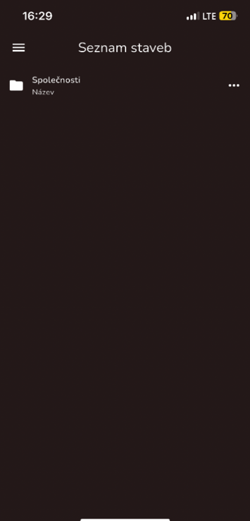 Pro odhlášení se musí uživatel nacházet na obrazovce Seznam staveb. Zde je zapotřebí, aby našel ikonu tři čárek
