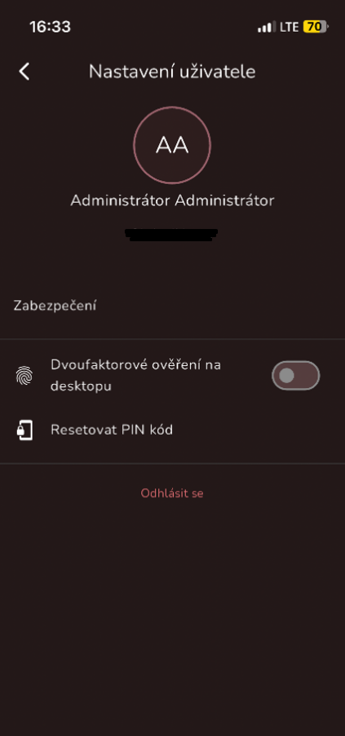 Nyní se uživatel nachází v uživatelském nastavení. Ve spodní části obrazovky se nachází červený text „Odhlásit se“. Po kliknutí na tento text se uživatel odhlásí.