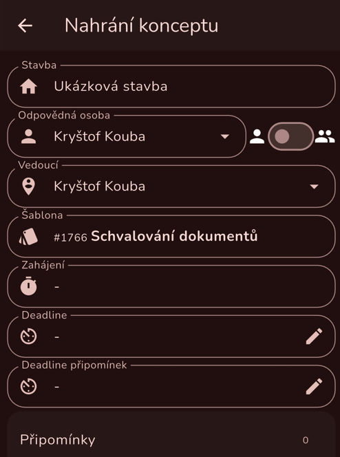 • Odpovědná osoba – jméno odpovědného uživatele za krok