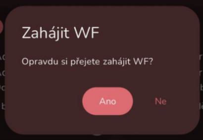 Uživatel zahájí proces kliknutím na tlačítko „Zahájit“ s ikonou šipky mířící doprava. Objeví se dialogové okno, kde uživatel potvrdí zahájení zmáčknutím tlačítka „Ano“. Zmáčknutím tlačítka „Ne“ se proces zahájení zruší.