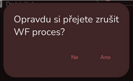V nově zobrazeném dialogovém okně uživatel potvrdí akci tlačítkem „Ano“. Může proces zrušení ukončit stisknutím tlačítka „Ne“.