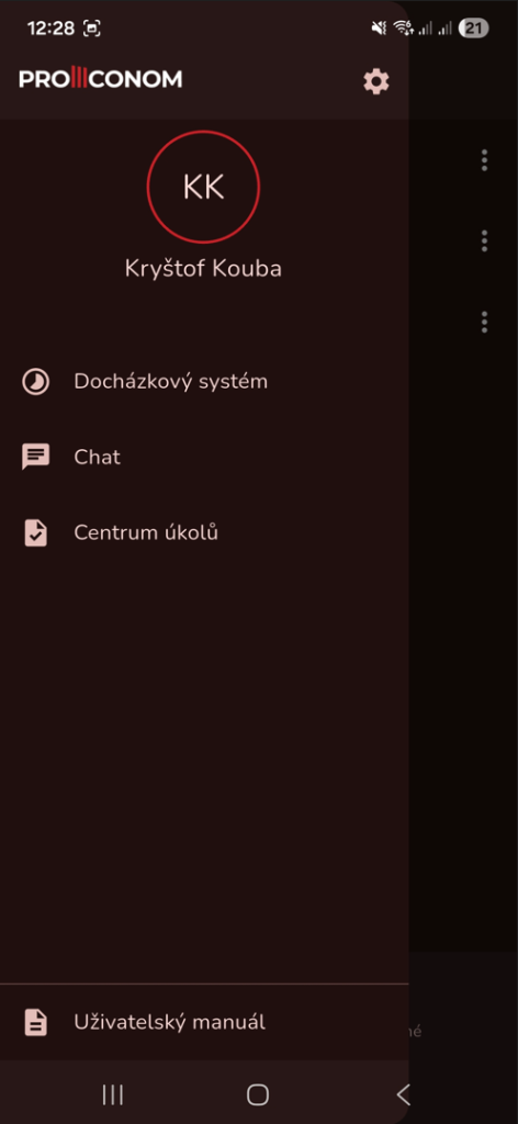 Uživatel otevře modul z obrazovky „Seznam staveb“. Zde uživatel musí najít v levém horním rohu ikonu menu a stisknut ji. V nově zobrazeném menu uživatel najde a stiskne tlačítko „Centrum úkolů“.