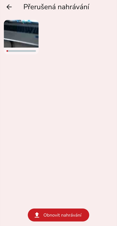 Pokud se nahrávání multimédií do deníku přeruší (ztráta připojení, vypnutí aplikace), tak uživatel má možnost nahrávání obnovit.