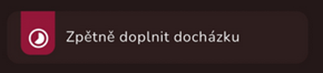 Čtvrté tlačítko v pořadí se vztahuje ke zpětnému vyplnění docházky. Po kliknutí na tlačítko se uživateli zobrazí nová obrazovka.