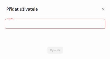 Po stisknutí tlačítka se zobrazí dialogové okno, kde je zapotřebí vyplnit email zakládaného uživatele.