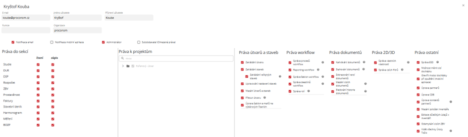 Dále je zde pole s checkboxy na Workflow notifikace. Na zaškrtnutou platformu budou chodit notifikace týkající se daného uživatele.