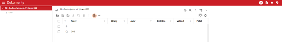 Práva dokumentů se otevřou v horní liště s nástroji skrze tlačítko „