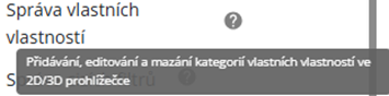 Právo na přidávání, editování a mazání kategorií vlastních vlastností ve 2D/3D prohlížečce.