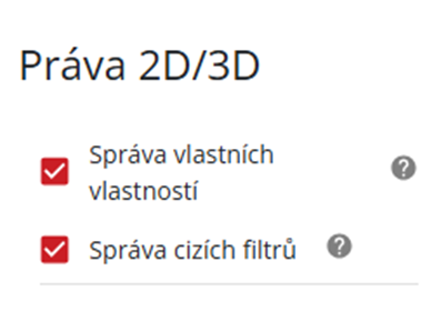 Právo na editování a mazání sad filtrů ostatních uživatelů ve 2D/3D prohlížečce.