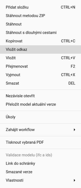 v tabulce dokumentů. Pro vložení opět lze využít kontextové menu a možnost “Vložit Odkaz“.
