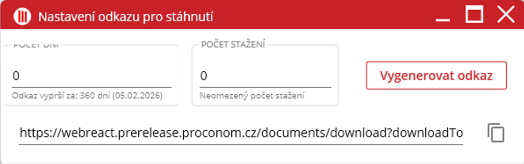 Uživatel zvolí soubor, který chce sdílet, a v kontextovém menu vybere možnost „Link do schránky“. V nově zobrazeném okně uživatel nastaví počet dní platnosti a počet stažení pro daný odkaz. Základní hodnoty jsou 360 dní pro trvanlivost a neomezený počet stažení. Poté stačí kliknout na tlačítko „Vygenerovat odkaz“, které vytvoří URL adresu. Adresu lze také kopírovat kliknutím na ikonu vedle odkazu.