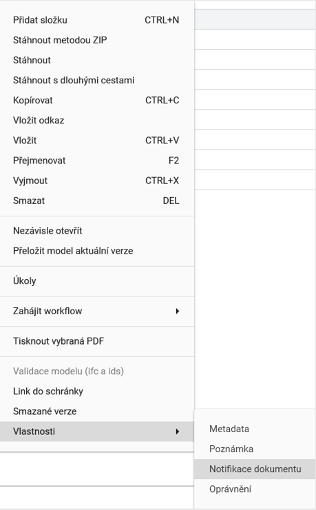 Pro nastavení notifikací uživatel musí vyvolat na cíleném prvku v kontextovém menu a v něm zvolit možnost “Notifikace dokumentu“. Poté stačí nastavit atributy notifikace popsané níže. V kartě „Na požádání“ uživatel vyplní jednorázové odeslání notifikace. Může zde vyplnit text, který se uživatelům zašle s notifikací. Na kartě „Expirace“ uživatel může notifikaci naplánovat na konkrétní datum a čas.