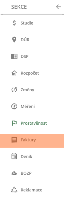 Detail stavby – Menu sekcí