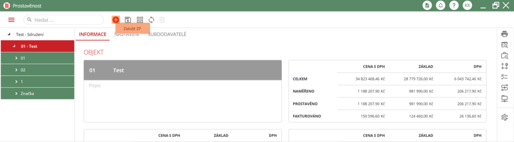 Druhá možnost je kliknout pravým tlačítkem ve stromovém zobrazení na objekt, do které se má ZP založit. Objeví se kontextové menu s možností “Založit ZP“.