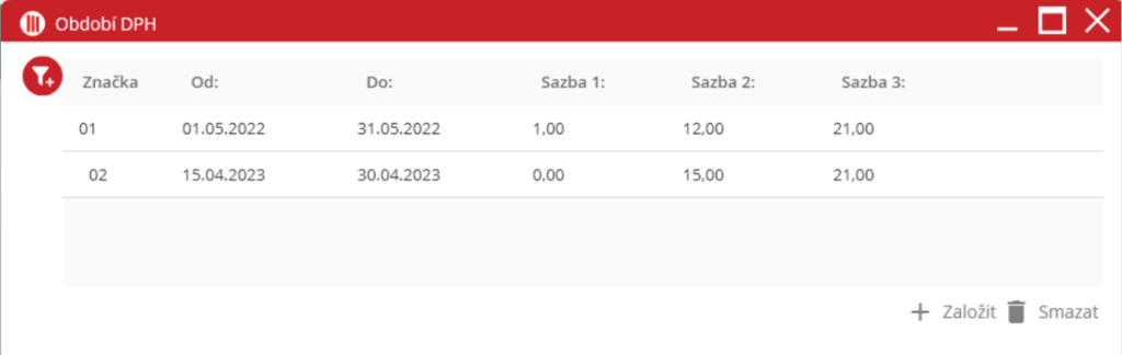 Detail karty „Zdaňovací období“ po rozkliknutí ikony lupy