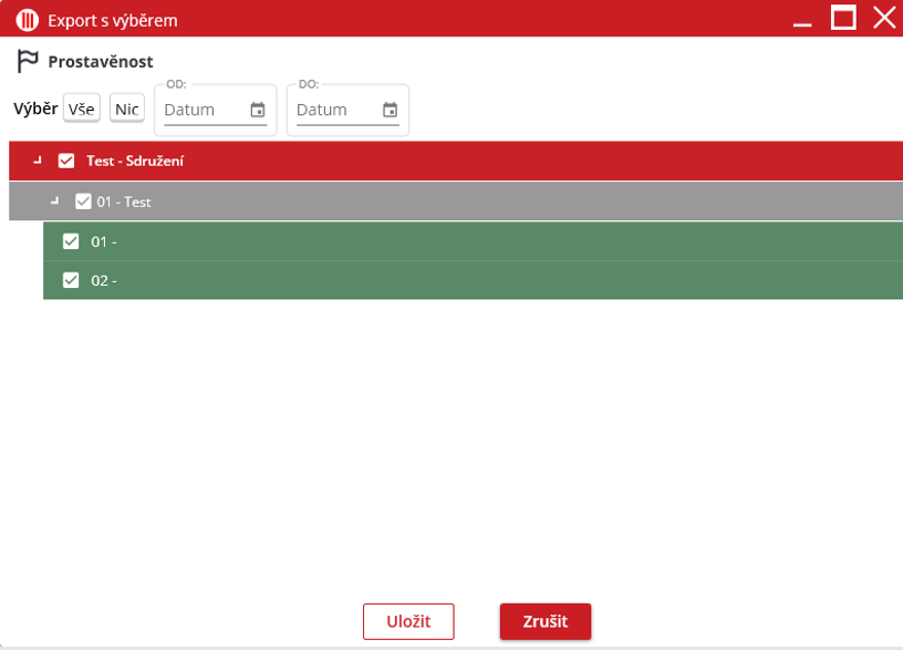 Jakmile jsou všechny požadované protokoly vybrány, uživatel export dokončí kliknutím na tlačítko „Uložit“. Tímto způsobem se vybrané protokoly uloží v požadovaném formátu na zvolené místo.