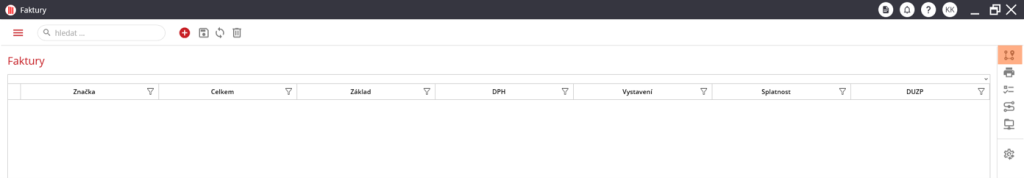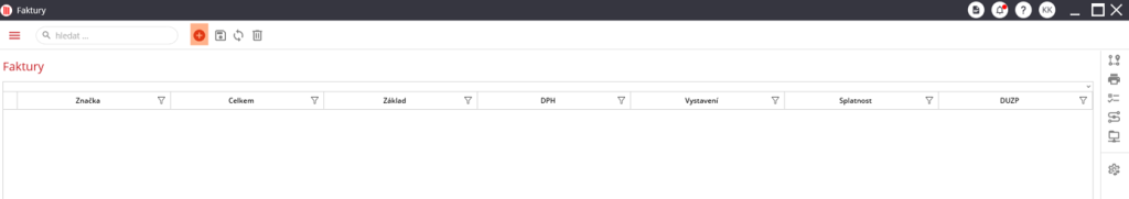 . Po kliknutí na ikonu se otevře nové okno, které slouží k vyplnění údajů nové faktury.