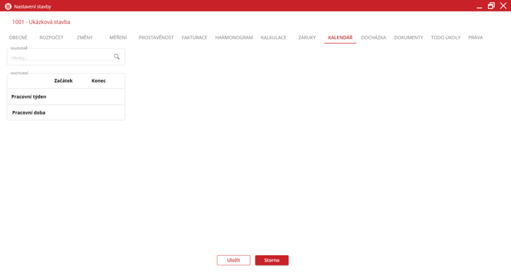 Nastavení kalendáře stavby