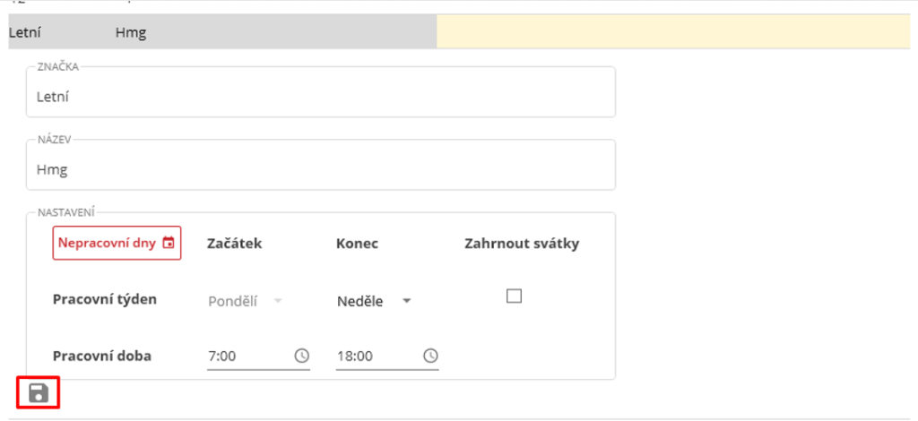 Po kliknutí na ikonu lupy se uživateli zobrazí číselník, kde může zvolit existující kalendář dvojklikem na daný řádek. Další možnosti je zobrazení a úprava existujícího kalendáře skrze jedno kliknutí na řádek kalendáře. Po provedení úprav se musí změny uložit ikonou diskety v levém dolním rohu detailu.