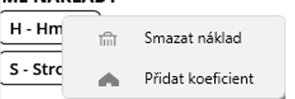 Nyní se uživatel nachází v okně pro úpravu vzorce. Uživatel nyní musí kliknout pravým tlačítkem myši na konkrétní náklad. Zde uživatel vybere možnost “Přidat koeficient“.