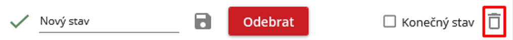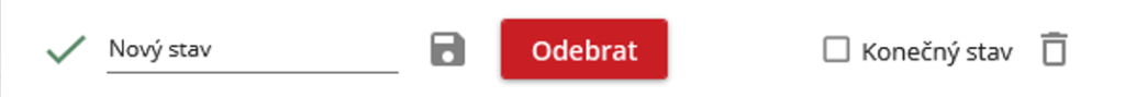 Z názvu se stalo pole, do kterého nyní uživatel může psát. Také může změnit volbu, zda se jedná o konečný stav. Změny uživatel uloží kliknutím na ikonu diskety.