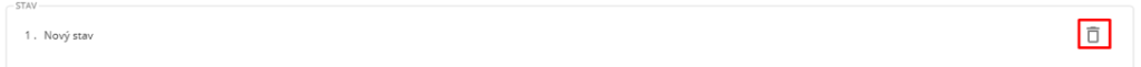 . V nově zobrazeném dialogovém okně uživatel musí v seznamu najít stav, který chce zcela smazat. Po nalezení uživatel musí kliknout na ikonu popelnice v daném řádku.