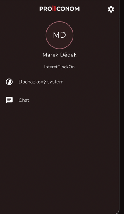 , která otevře menu aplikace. V menu je nyní nutno najít a kliknout na tlačítko „Docházkový systém“.