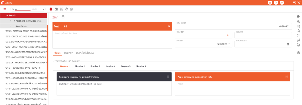 a pohledu na strukturu změn ve formě seznamu. Stačí zadat hledaný výraz