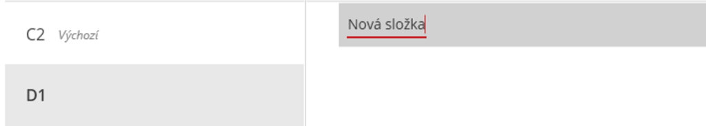 V pravé části obrazovky se zobrazí nová složka, kterou uživatel může přejmenovat přepsání jejího názvu. Tato složka je na nejvyšší úrovni struktury.