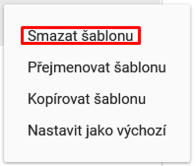 Uživatel je schopen smazat šablonu skrze možnost „Smazat šablonu“ v kontextovém menu vyvolané pravým tlačítkem myši. Po kliknutí na možnost se šablona odstraní.