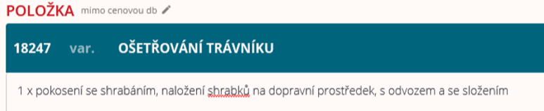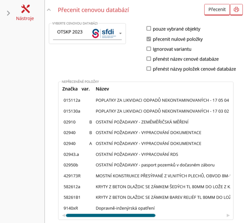 - Přenést názvy položek cenové databáze = ke každé přeceněné položce bude připsán název položky