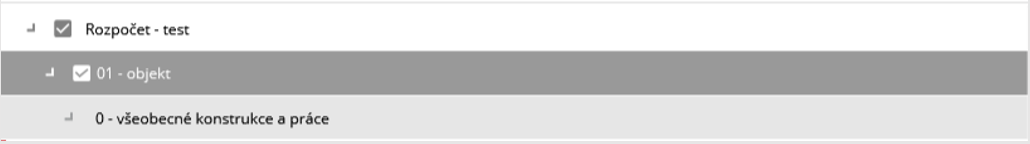 Uživatel zvolí stavební objekt ve stromovém zobrazení levým tlačítkem myši.