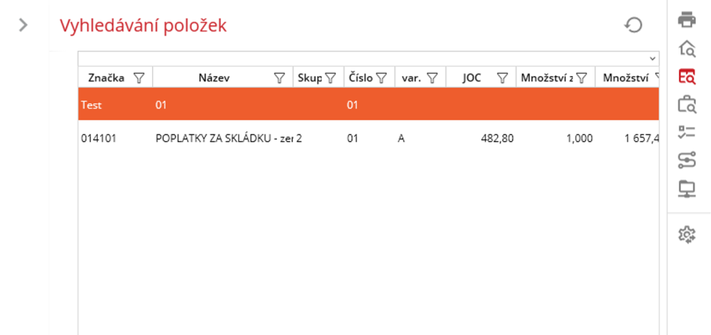 Po výběru funkce “Přejít k položce“ dojde k označení zvolené položky a zobrazení jejího detailu ve stromovém zobrazení. Přejít k položce lze i klávesovou zkratkou „Ctrl + Enter“.