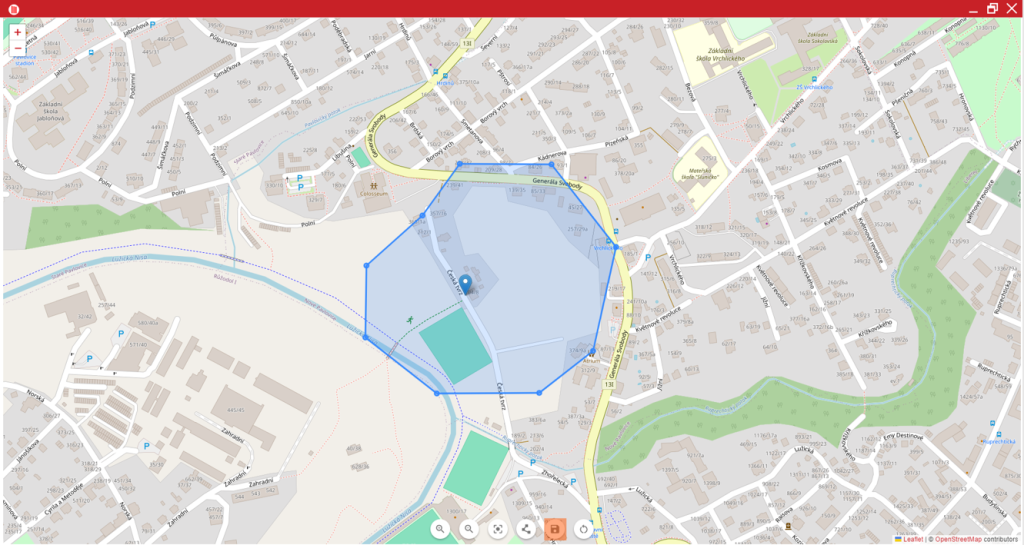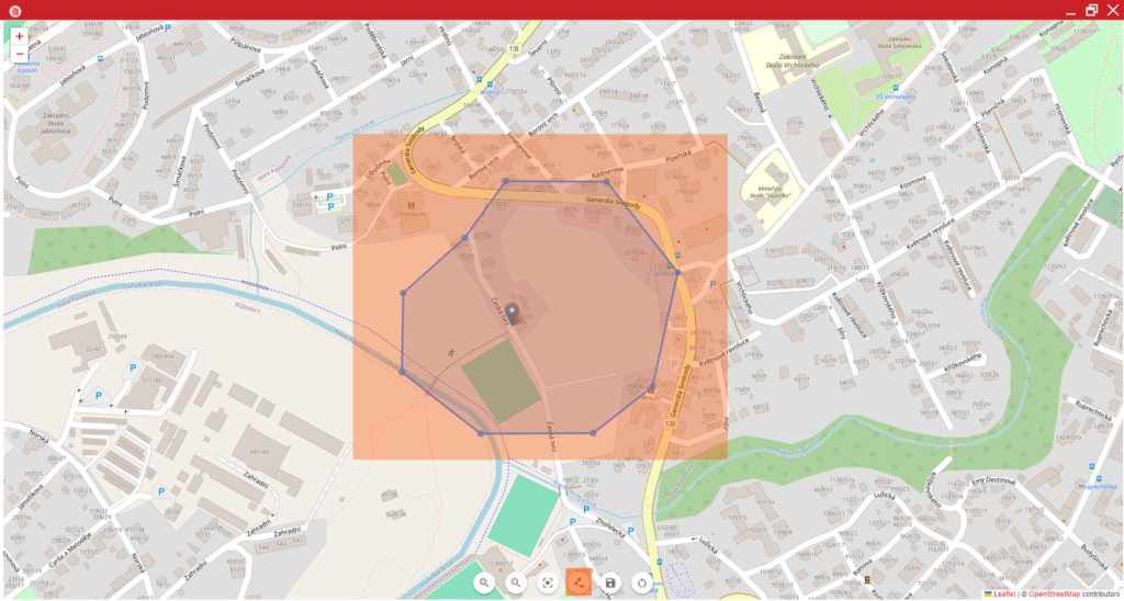Pro zakreslení polygonu zvolí uživatel v okně mapa ikonu pětiúhelníku s plus