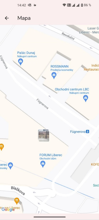Na kartě Mapy se zobrazí fotky pořízené v modulu Reklamace skrze mobilní aplikaci. Pro přiřazení fotografií k místu je nutné, aby aplikace měla přístup k GPS poloze v nastavení zařízení.