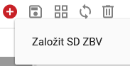 Po kliknutí na ikonu se objeví nabídka s možností “Založit SD ZBV“.
