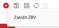 Po kliknutí na ikonu se objeví nabídka s možností ”Založit položku ZBV“.