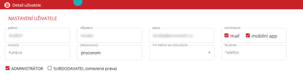 Detail uživatele může administrátor otevřít dvojklikem levým tlačítkem myši na řádek v tabulce s daným uživatelem.