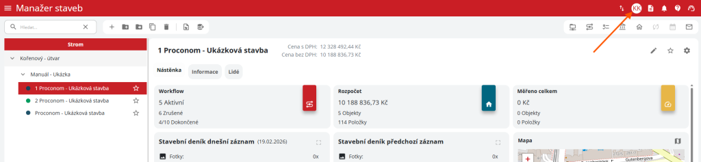 Stavbu uživatel může založit kliknutím na ikonu plus