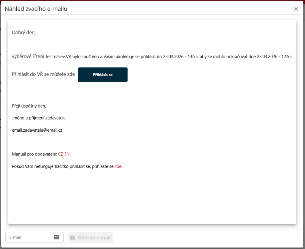O výsledku VŘ budou dodavatelé informováni emailem.