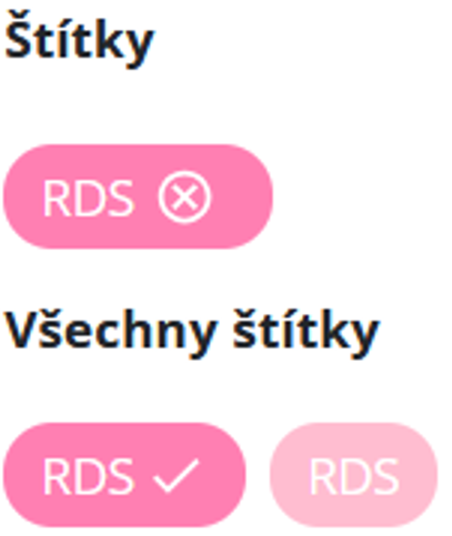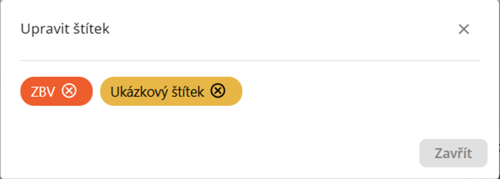 Štítek lze smazat kliknutím na ikonu křížku vpravo od názvu.