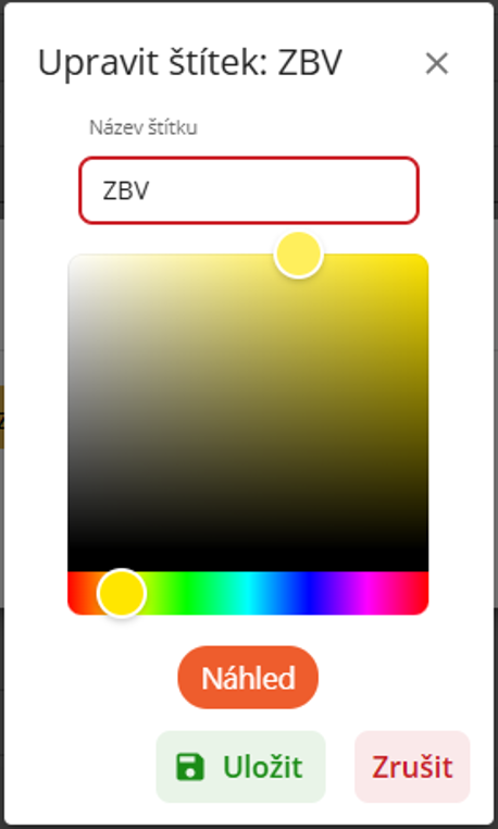 Vytvořené štítky, které nejsou součástí žádného úkolu lze volně editovat. Kliknutím na tlačítko „Editovat štítek“ zobrazí nabídku štítků, které nejsou využívány v žádném úkolu.