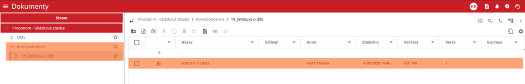 - Datum nahrání – datum vytvoření dopisu