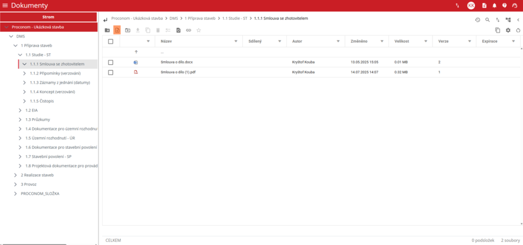Pro zahájení úpravy dokumentu v rámci webového rozhraní je nutné soubor stáhnout do svého počítače. Poté je zapotřebí soubor otevřít v počítači standartně pomocí dvojkliku. Provedené úpravy uživatel uloží a dokument nahraje zpět do PROlllCONOMu procesem popsaném výše. Pro nahrání verze stejného dokumentu uživatel klikne pravým tlačítkem myši do tabulky s verzemi a v kontextovém menu zvolí možnost „Nahrát verzi“ viz obrázek níže. Dokument se přiřadí jako nejnovější a aktuální verze.