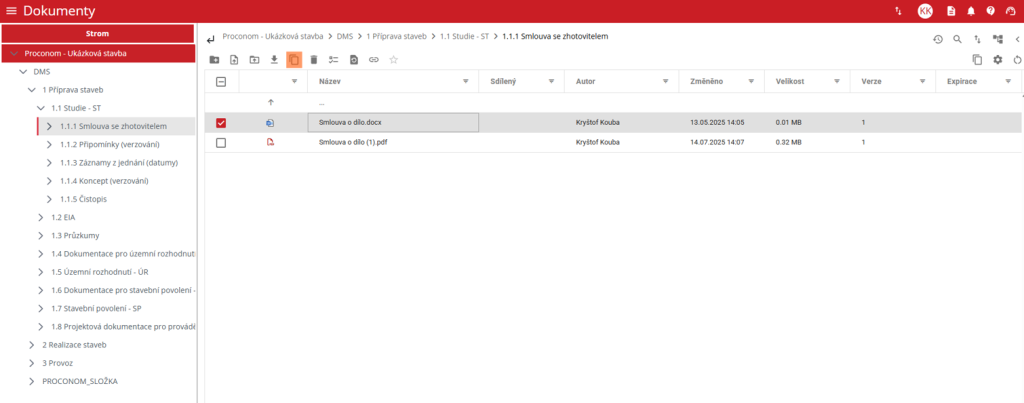 Pro zobrazení umístění souboru uživatel stačí kliknout na ikonu souboru s lupou a daný dokument se zobrazí a zvolí DMS.