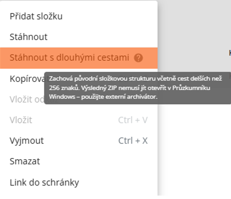 Pro stáhnutí souborů s dlouhou cestou existují dvě cesty.