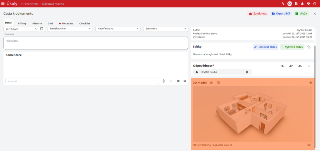 Založení úkolu na 3D modelu