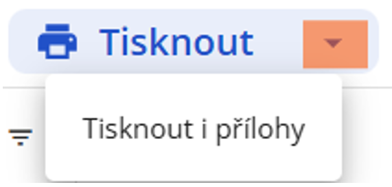Pokud bude uživatel chtít tisknout i přílohy, tak rozbalí nabídku vedle tiskárny a zvolí „Tisknout i přílohy“.